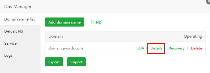 4. Setelah klik confirm, nama domain kita masuk ke dalam list domain. Selanjutnya kita bisa klik detail untuk mengecek settingan DNS domain kita