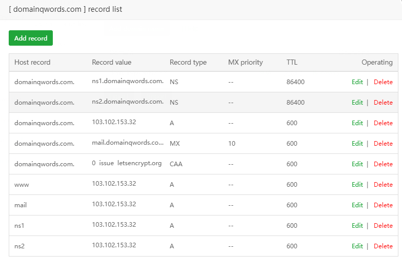 6. Kita bisa menambahkan, menghapus ataupun edit DNS melalui halaman ini.