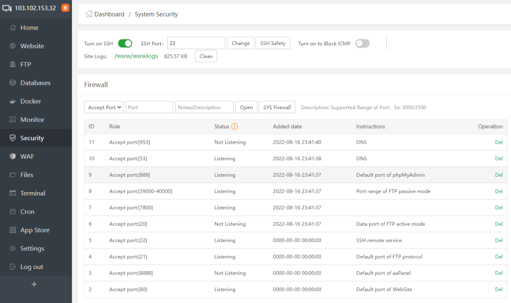 1. Pada halaman dashboard aapanel masuk ke menu security