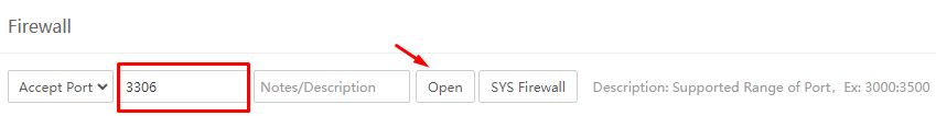 2. Cek apakah port 3306 sudah terbuka, jika belum buka port dengan cara memasukkan port dan klik OPEN