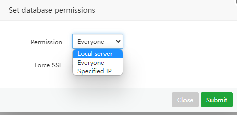 6. Pilih Everyone jika database bisa diakses oleh semua IP atau pilih Spesified IP jika hanya IP tertentu yang bisa mengaksesnya. Jika ada lebih dari 1 IP bisa dimasukkan dengan dipisahkan dengan tanda koma (,).