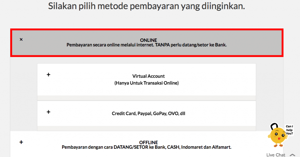 - Lakukan pemesanan layanan melalui www.Qwords.com. Setelah check out pemesanan, pilih Metode Pembayaran ONLINE (Pembayaran secara online melalui internet. TANPA perlu setor/datang ke Bank).