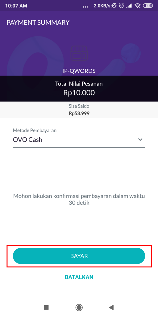 Qwords menyediakan metode pembayaran OVO. Yakni metode pembayaran secara Online melalui aplikasi di smartphone. Berikut panduan bayar menggunakan pilihan metode bayar OVO: