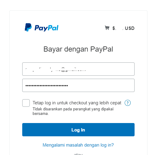 3. Login akun Paypal Anda menggunakan username dan password yang sesuai.
