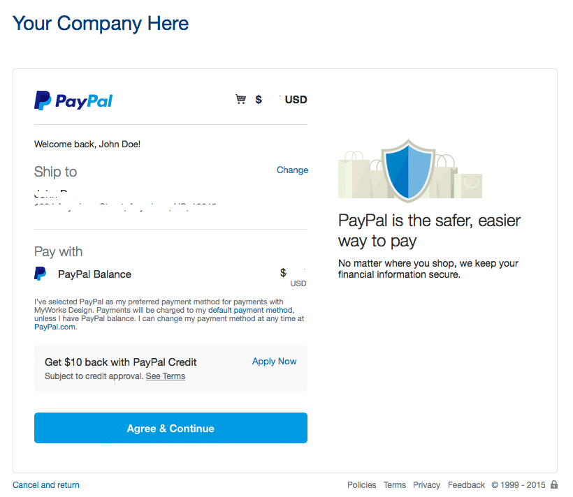 4. Setelah berhasil masuk ke akun PayPal Anda, cek kembali apakah data sudah sesuai. Jika sudah benar, klik Agree & Continue
