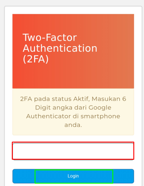 5. Jika kita sebelumnya sudah mengaktifkan Fitur 2 FA ( Factor Authentication ), maka kita inputkan terlebih dahulu kode yang ada di authenticator ke form yang ada