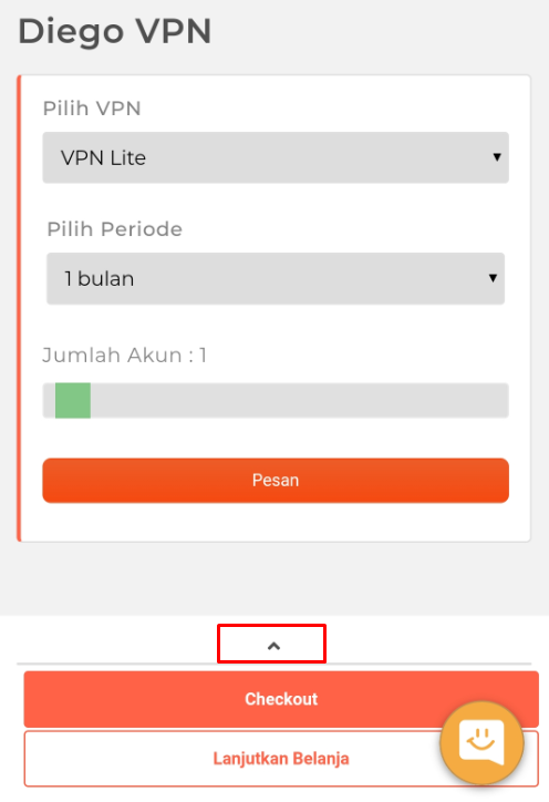 Klik Icon Up untuk melihat Pesanan kita di keranjang, Lalu klik Checkout setelah memastikan pesanan kita sudah sesuai