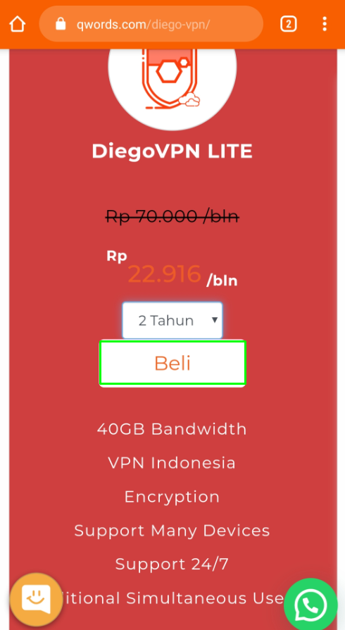 1 Pertama kita melakukan Melakukan Pemesanan layanan di Qwords. Contoh kita melakukan pemesanan Layanan DiegoVPN dengan klik button Beli