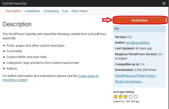 4. Akan muncul dialog untuk melakukan instalasi plugin importer, klik “Install Now”