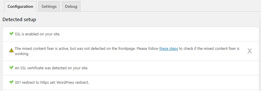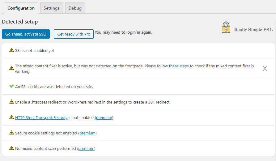 9. Pada tab Configuration, klik Go ahead, activate SSL! untuk memulai perbaikan mixed content