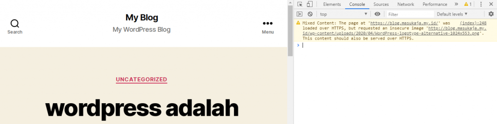 Kalian pernah install SSL namun tanda gembok hijau tidak muncul? Biasanya gembok hijau tidak muncul ini disebabkan karena adanya mixed content. Untuk mengeceknya bisa dengan klik kanan pada browser > inspect > console