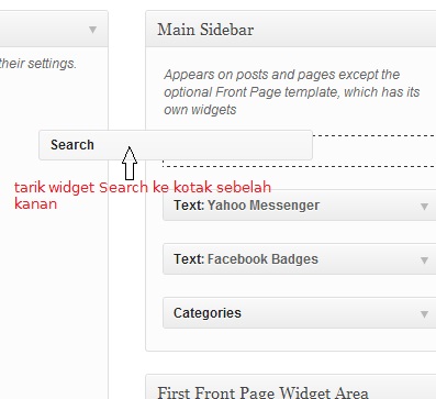 4. Untuk menambahkan widget, drag and drop ( klik, tahan, dan tarik) widget ke kotak disebelah kanan seperti gambar dibawah: