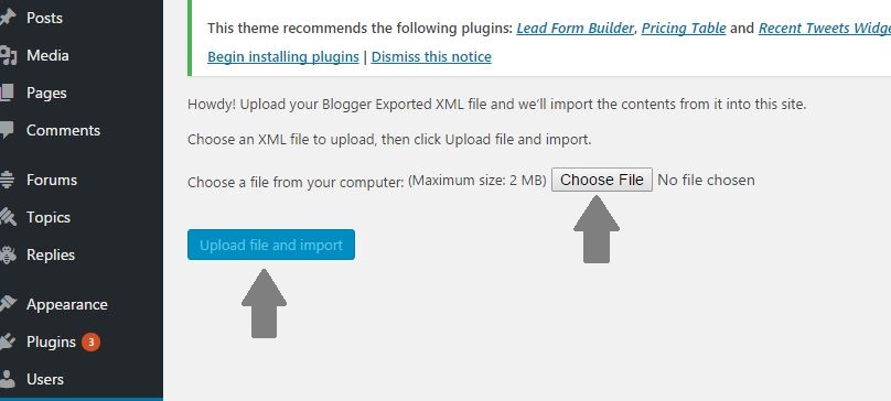 4. Klik tombol Run Importer setelah itu upload data backup XML dengan klik Choose file  anda lalu klik tombol Upload file and import