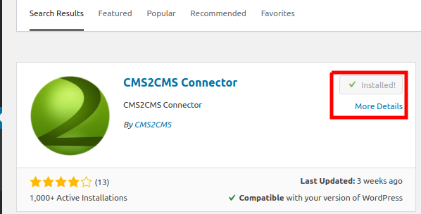 - Search di kolom pencarian plugin dengan nama CMS2CMS, Selanjutnya install plugin dan aktivkan