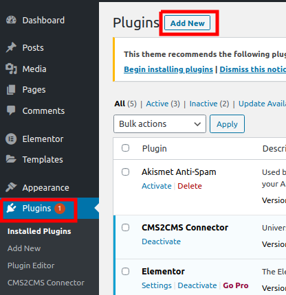 - Kita login ke dashboard WordPress terlebih dahulu lalu kita Install Plugin CMS2CMS dengan memilih Menu Plugin >> Add New