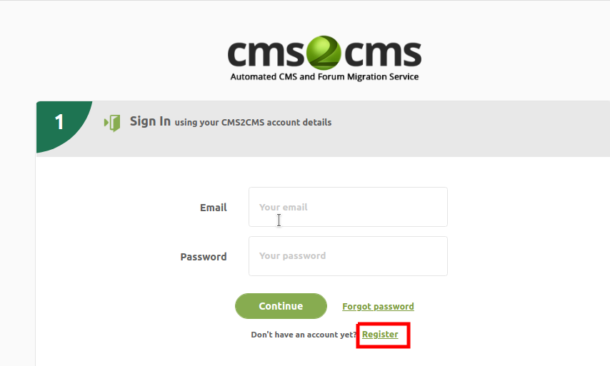 - Setelah aktif kita klik Menu CMS2CMS di menu dan lakukan register jika belum memiliki akun. Jika sudah memiliki akun bisa langsung login menggunakan email dan password yang terdaftar