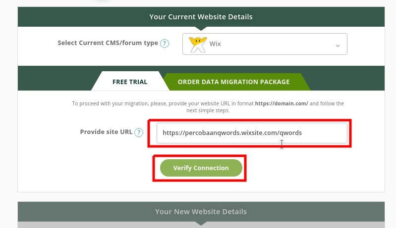 - Setelah berhasil Connect, Kita pilih CMS awal yang akan di migrasikan yaitu WIX