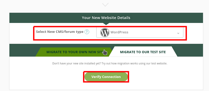 - Selanjutnya kita pilih CMS tujuannya yaitu CMS WordPress dan klik Verify to Connection