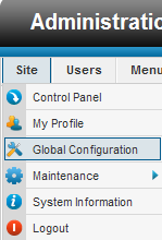 Pertama login ke halaman administrator Joomla anda, Masuk ke menu Site –> Global Configuration