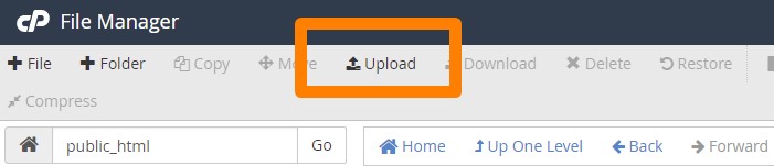 4. kembali ke Cpanel | File manager > public_html, pilih menu upload lalu silahkan pilih file yang telah dibuat menjadi .zip tersebut, file manager otomatis melakukan proses upload pada file yang dipilih, jika sudah status akan berubah menjadi complete