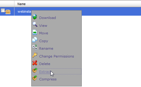 6. Pilih file yang  kita upload sebelumnya, lalu extract file tersebut ..