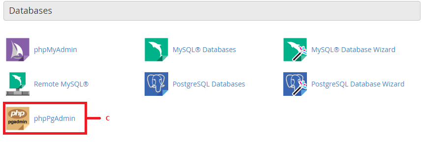 4. Kembali ke halaman dashboard cPanel. Lalu, pilih menu phpPgAdmin di bagian Databases.