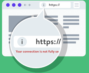 Tampilan web yang mengalami mixed conten ini akan ada tanda seru di depan Urlnya seperti