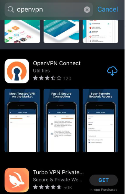 2. Setelah melakukan order DiegoVPN dan sudah mendapatkan data profil melalui email maka selanjutnya silahkan melakukan download dan install applikasi pada AppStore OpenVPN Connect.
