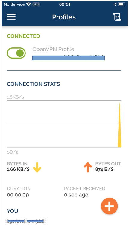 6. Setelah berhasil mengimputkan info login VPN bapak, selanjutnya Geser tombol conectednya untuk mengaktifkan, Jika info login sudah sesuai maka akan berhasil konek dan tampil info perihal aktifitas VPNnya seperti berikut