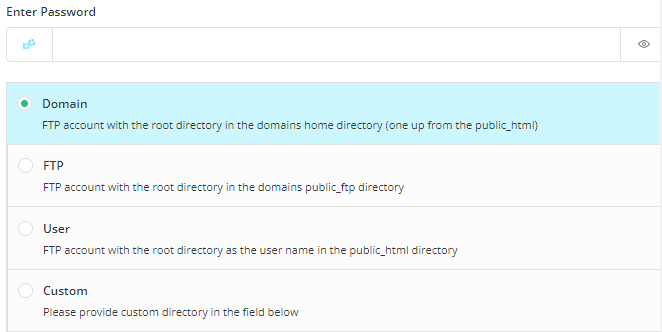 4. Masukkan username dan password akun FTP yang kita inginkan pada kolom yang tersedia. Atau bisa juga klik tombol dadu untuk generate password.