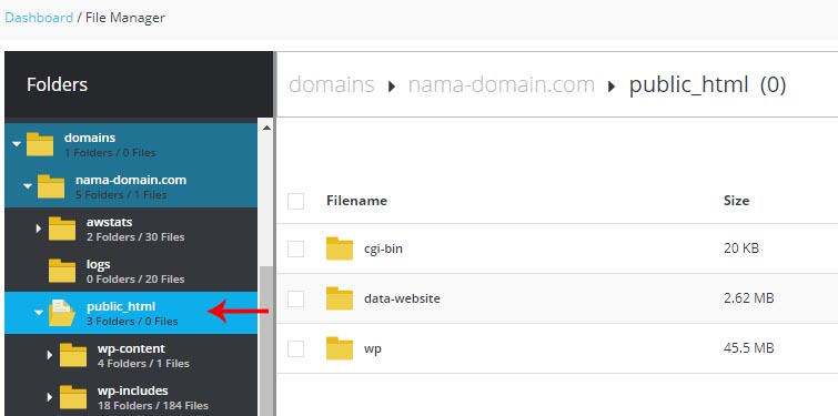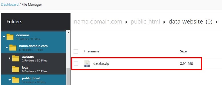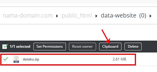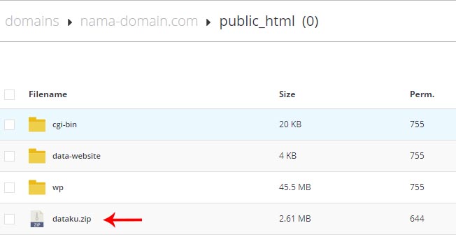 (dalam kasus ini file dataku.zip akan dipindahkan ke direktori public_html)