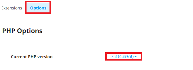 3. Klik tab Options di bagian atas. Pastikan versi PHP yang digunakan bukan native, ya.