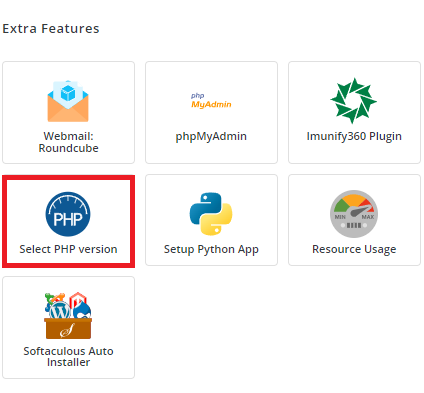 2. Pilih menu Select PHP Version di bagian Extra Features.
