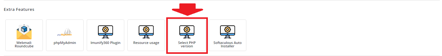 2. Setelah Anda berhasil login ke DirectAdmin hosting Anda kemudian masuk menu Select PHP Version, jika sulit menemukannya anda bisa menggunakan fitur shearcing di DirectAdmin dengan memasukkan php