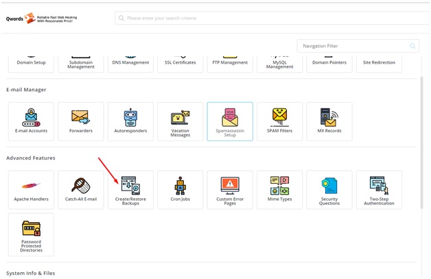 Langkah Kedua jika sudah berhasil login silahkan klik menu Created/Restore Backups.