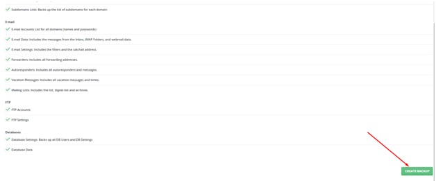 Jika sudah masuk ke menu Created/Restore Backups lakukan check list semua data yang ingin di lakukan backup kemudian klik menu Create Backup
