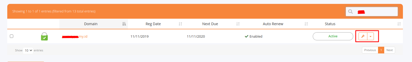 3. Pilih domain yang akan kita tambahkan DNSSEC. Lalu, klik menu dropdown di ujung kanan domain.