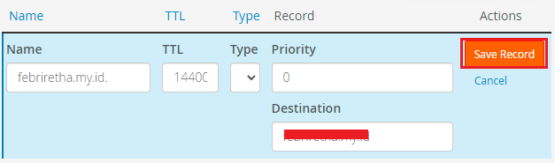 6. Ganti bagian Destination dan Priority sesuai dengan yang kita inginkan. Klik Save Record.