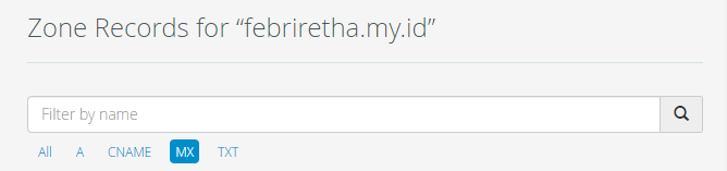 4. Klik MX di bagian atas untuk mem-filter records yang ada. Lalu, pilih MX record yang akan kita ubah.