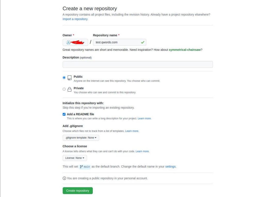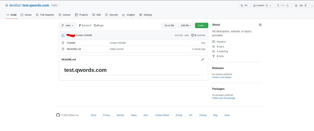 Setelah selesai, buat sebuah file dengan nama CNAME (Harus besar semua) dan isi dengan domain yang anda ingin gunakan. Contoh, test.qwords.com