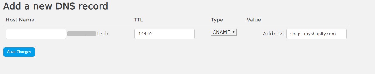 4. Selanjutnya Sahabat Qwords dapat memasukan DNS Record dengan Type CNAME dengan value shops.myshopify.com