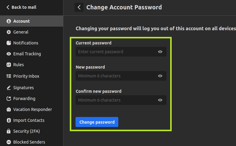 3. Masukkan kata sandi saat ini dan kata sandi baru di bidang masing-masing
