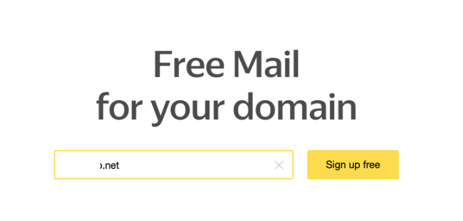 2. Masuk ke halaman Domain di Yandex. Lalu, masukkan nama domain kita dan klik Sign Up Free.