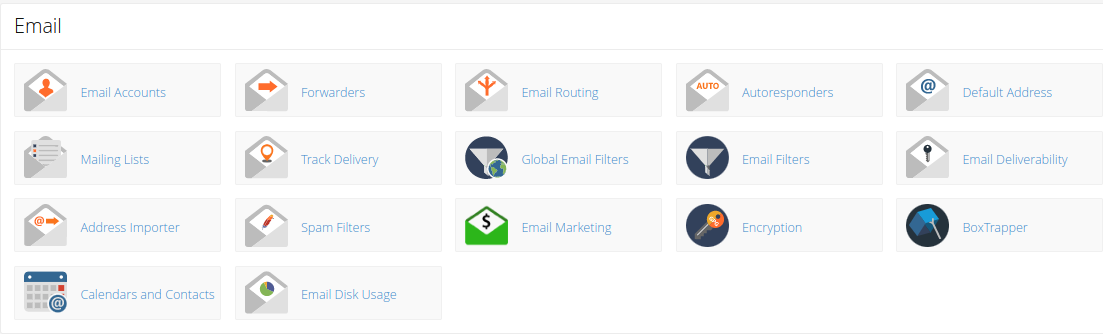 Nah, salah satu menu yang ada di cPanel adalah Email. Menu Email berfungsi untuk mengelola semua hal tentang email hosting kita.