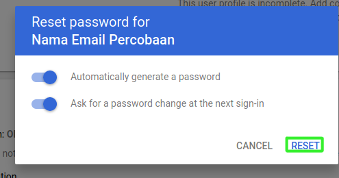 a. Melakukan Reset Password User dengan memilih Menu reset password lalu Klik Reset untuk meresetnya 🙂