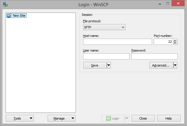 Setelah menginstall WinSCP dengan mengunduhnya dari winscp.net, buka WinSCP maka akan muncul tampilan seperti ini: