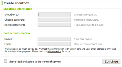 2. Kemudian klik Create Shoutbox (Untuk membuat Shoutmix baru)