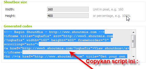 cara menambahkan shoutmix di halaman web kita