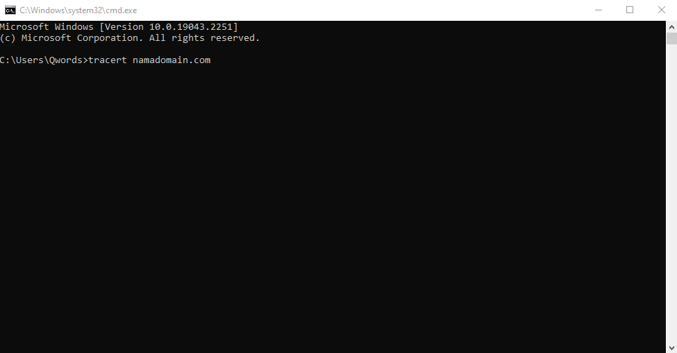 3. Ketik tracert namadomain seperti gambar di bawah. Lalu, tekan Enter.