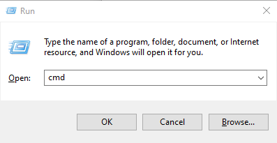 2. Ketik CMD di kolom Open. Lalu, klik OK.